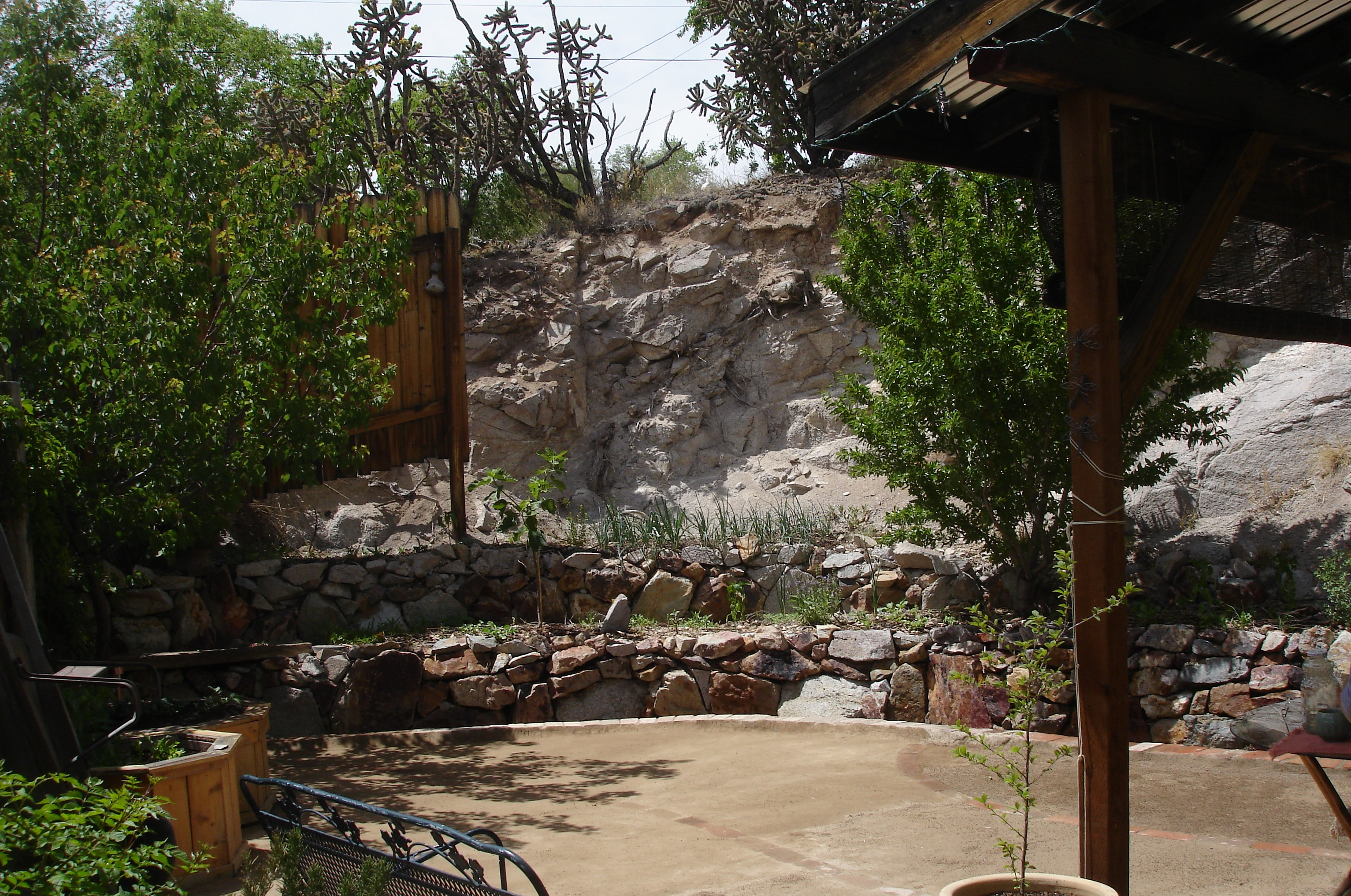 When I purchased my current home in Silver City in 2006, it was a nearly barren hill-cut of solid granite. (See the first work begun in 2006 below.)