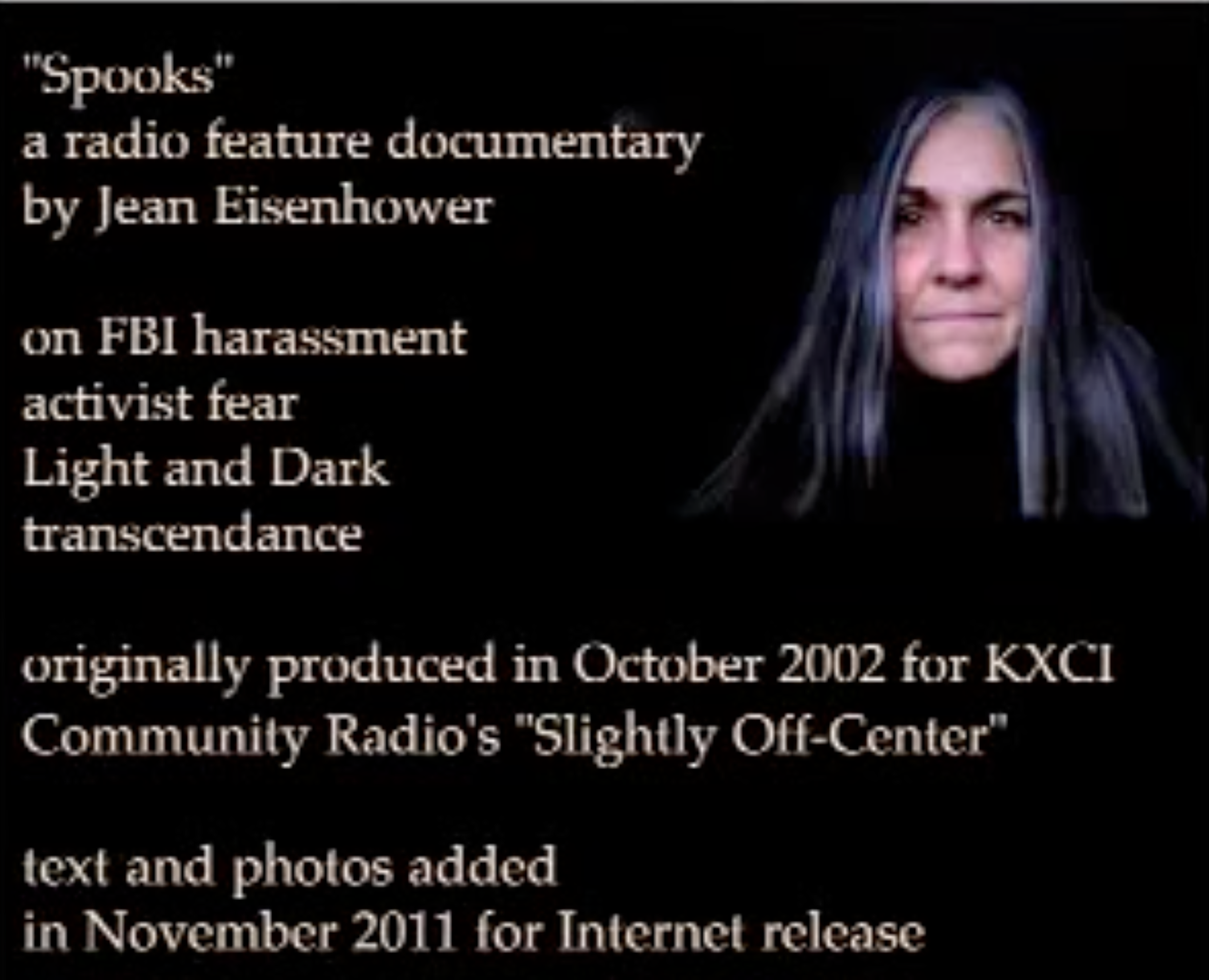 In 2002, I produced this piece for Halloween night, titled “Spooks,” concerning federal agents, sometimes called “spooks,” for airing on the “Slightly Off-Center” radio show on KXCI Community Radio in Tucson, AZ.
