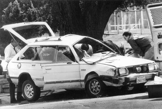 When Bari, whose work of 20 years has been completely non-violent and within the law, began receiving death threats, the Oakland Police refused to take interest. “When you turn up dead, Judi, we’ll investigate.” Then her car was rammed, sending it into the air and slamming it into another vehicle which was pushed up a flight of stairs, totaling her car. She, Cherney, another activist and four children were miraculously not hurt badly, and they could identify the truck as one they had blockaded the day before. But the police refused to investigate.