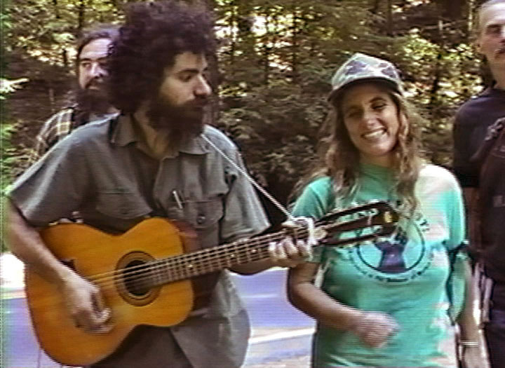 Before we called for an end to tree-spiking, I supported it and wrote a lot of songs about it, including “Spike a Tree for Jesus” and co-wrote along with Mike Roselle “The Ballad of the Lonesome Tree-Spiker” and a few others. I still sing them because they’re historical tunes. They may not be contemporary to northern California politics, but “Spike a Tree for Jesus” is not really about tree spiking and it’s not a song about Jesus, even though tree-spiking and Jesus come up in every single chorus. The song is about taking responsibility for the things that we make and the things that we do. You know, if you work, you’re not just doing your job, you’re creating a product or a service. What are the ramifications, the end result of the service or product you create? Take responsibility for that. That’s what “Spike a Tree for Jesus” does. It takes a look at who made the cross, where it all happened, where it all went down, who was ultimately responsible for the crucifixion of Jesus who, by the way, was the first hippie peace activist.